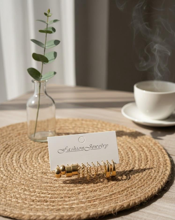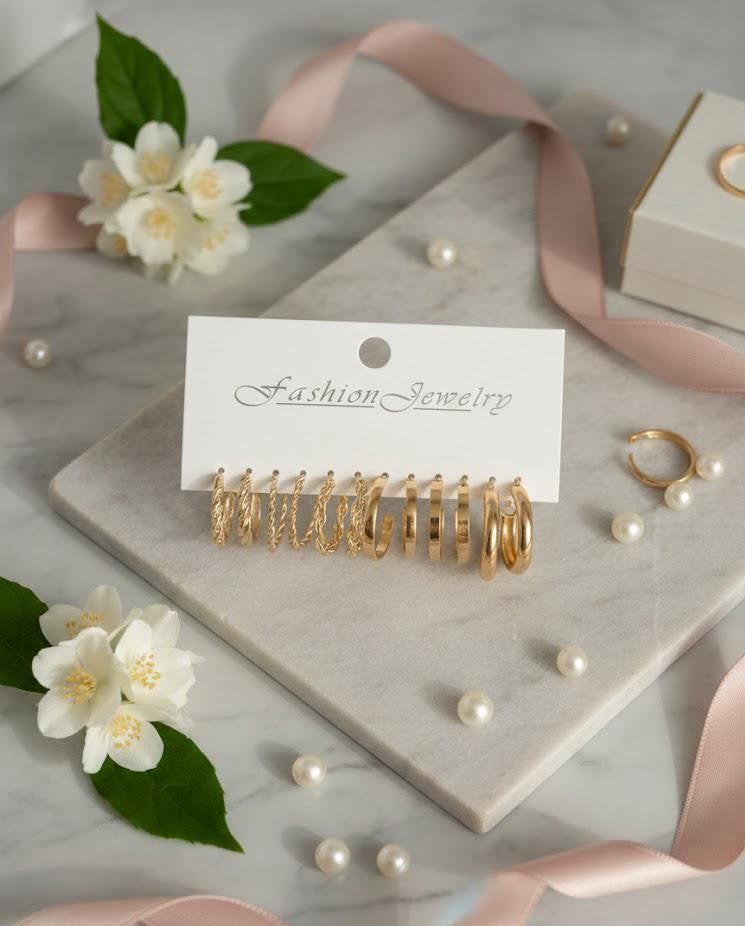 A versatile set of six golden hoop earrings designed for everyday wear and easy styling....